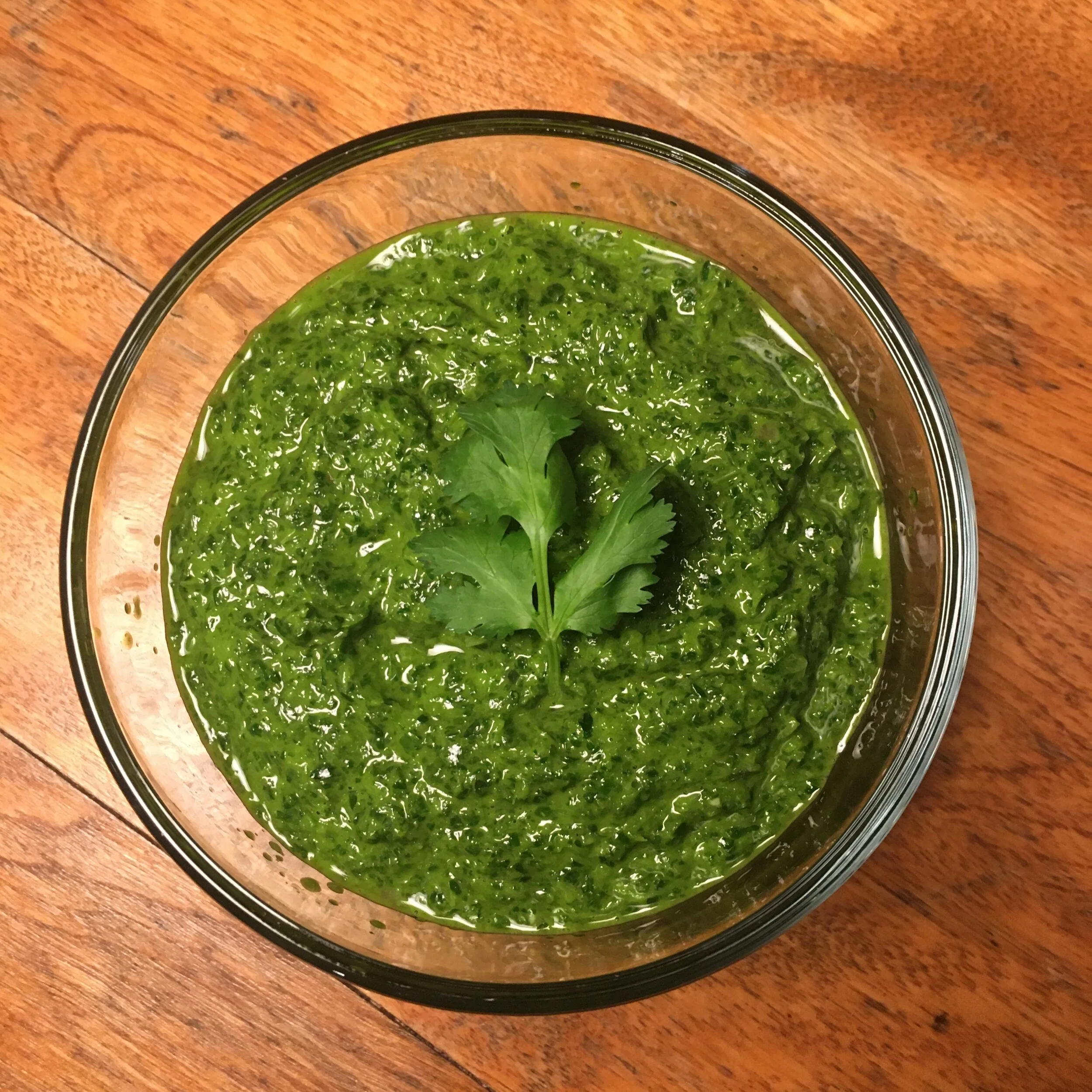 A fresh batch of Cilantro Chimichurri- excellent on fish, chicken, beef, sweet potatoes, steak & eggs