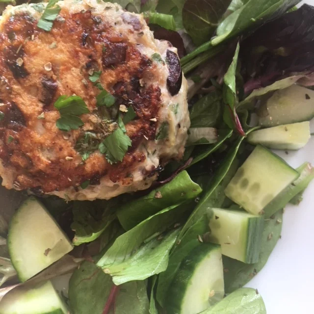 *These patties can also be baked on a baking sheet lined with parchment paper at 375 degrees Fahrenheit for 15 minutes but they will not get brown so they will look different than photos on this page*